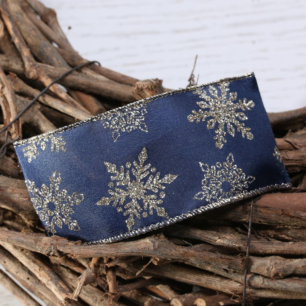 Navy with Gold glitter snowflake w/e 63mm x 10yd